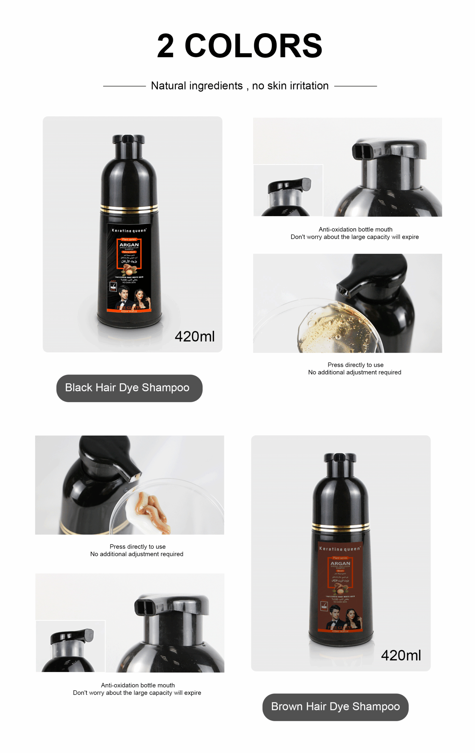 Volume | Hair Dye Shampoo Black 420ml Hair Dye Shampoo Brown 420ml | |||