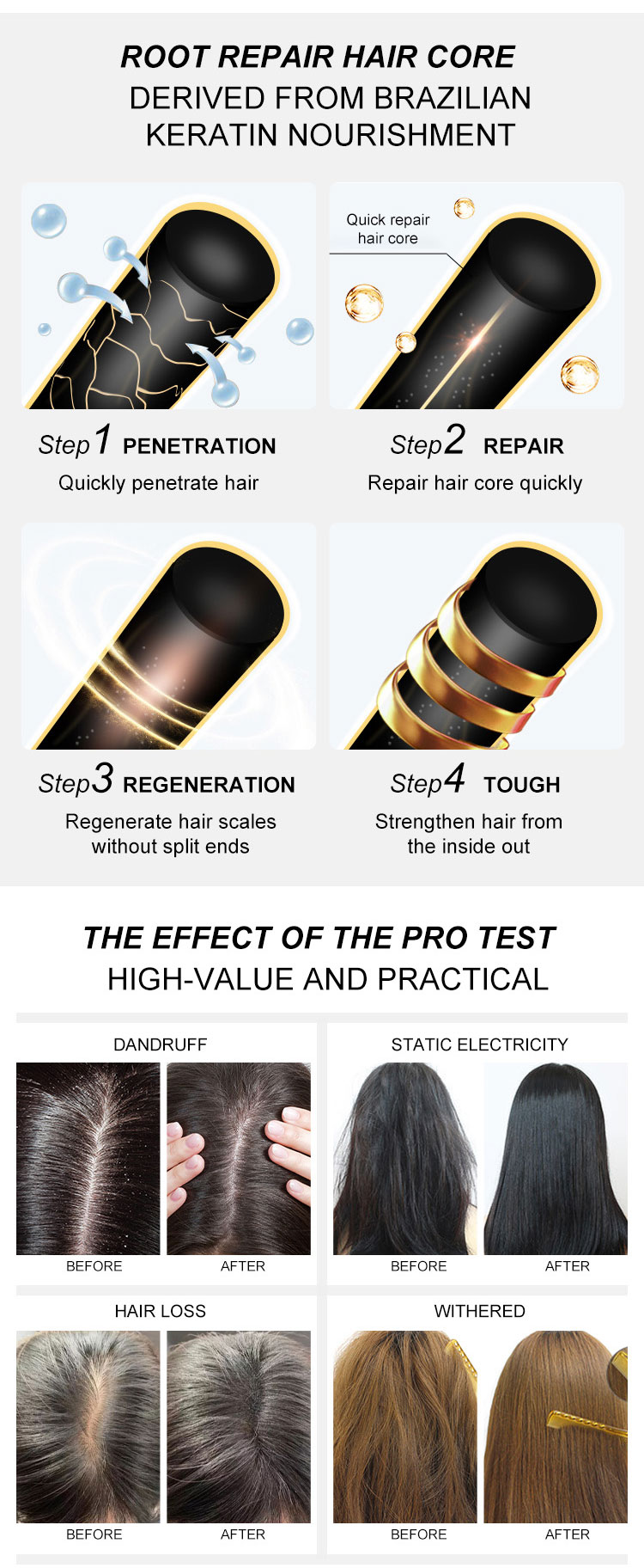 Function | 1.Strengthens hair to reduce breakage; 2.Prevents dandruff and irritation; 3.Increases hair shine and softness; 4.Controls excess hair oiliness; |