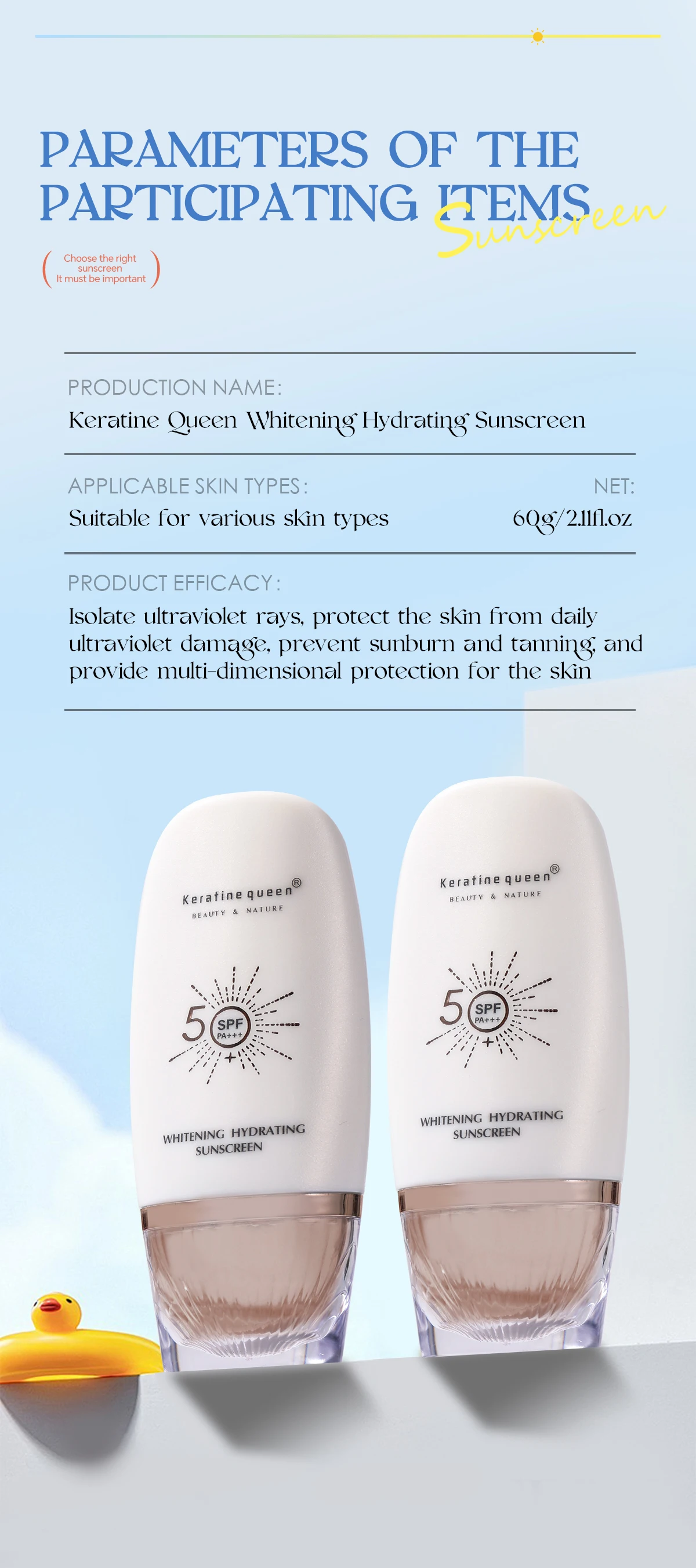 Item Name | Keratine queen Whitening Hydrating Sunscreen 60g |